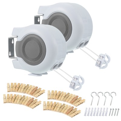Unique Bargains Portable Retractable Wall-Mounted Outdoor Indoor Clotheslines