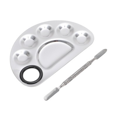 Unique Bargains Portable Small Semicircle Nail Art Palette Silver Tone 1 Set