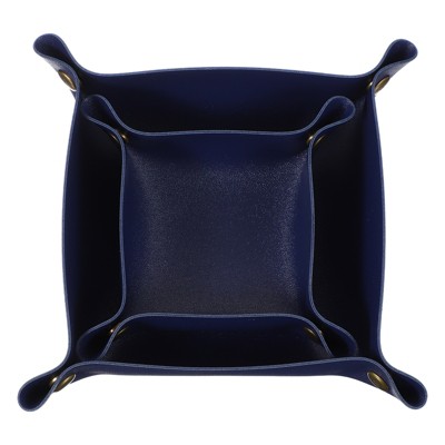 Button design makes the leather tray with bright snaps easy to assemble and won't open. You can fold it to pack it inside your case or bag when you do not need it. Portable and compact, place your items in the trays to keep them safe and secure. The trays can be stacked on top of each other for easy storage when not in use. These trays can be easily moved between many locations, such as from a nightstand to an entryway table. Wide application for various settings, including entry tables, bedside stands, entrance cabinets, countertops, and dressers. Great for organizing personal belongings and reducing clutter, including keys, watches, jewelry, earbuds, cell phones, coins, makeup, pens, and glasses. This catchall storage tray serves as a good decoration for rooms and makes a wonderful gift for graduations, anniversaries, birthdays, Thanksgiving, Christmas, White Elephant, and Valentine’s Day.