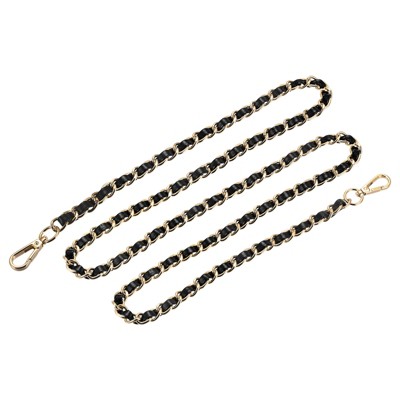 Unique Bargains PU Leather Braided Fashion Women's Handbag Purse Strap 50cm/19.7" Black, Gold Tone