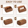 The tissue box cover is crafted from PU leather. This faux leather tissue box is designed to withstand daily wear and tear, while also being water-resistant for added durability. Its resilience ensures it remains functional and stylish over time. Featuring a minimalist aesthetic, this tissue box cover rectangle seamlessly blends with various decor styles, enhancing the look of any room. The practical design allows for easy access to tissues with the opening aligned with the dispenser slot. Maintaining the tissue box holder's elegant appearance is a breeze with just a simple wipe using a damp cloth. This ensures it stays pristine and attractive without the need for elaborate cleaning methods. This rectangular leather tissue box cover serves as a versatile storage solution for tissues, wipes, gloves, trash bags, and other items. Ideal for bathrooms, vehicles, sinks, nightstands, and office tables, it provides a practical and aesthetically pleasing storage option. Manual measurement, please allow slight errors in size. The color may vary slightly due to differences in screen displays.