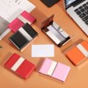 This business card holder is crafted from quality PU leather and stainless steel, providing a soft and comfortable texture. The magnetic closure securely holds business cards, preventing accidental falls and ensuring reliability. It effectively protects cards from damage, discoloration, and dust, keeping them organized. This holder is ideal for various types of cards and is designed for easy portability, making it a perfect accessory for professionals.