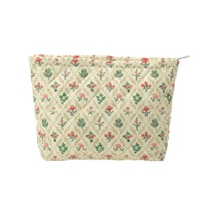 Unique Bargains Quilted Flowers Makeup Bag Pink Green 1 Pc