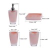 Item Function: 1. The product makings makes these suits less prone to breakage and can last longer. And each one can be adapted to your home, giving you more storage space. 2. Item includes 1 x mouthwash cup, 1 x toothbrush holder, 1 x lotion bottle, 1 x soap box. Has most things you need for a bathroom. 3. People can use these items together in your bathroom counter, your restroom, or you can use individual piece, such as tumbler for makeup tools or pens, dispenser for lotion, soap and more. It is also a stylish decoration full of vitality for your monotonous ordinary bathroom, easy to match with different styles. 4. Functional and beautiful design make this bathroom accessories set a great gift for housewarming, wedding, birthday, mother's Day, thanksgiving Day, also for mom, sister, colleague and friends. Specifications: Product Name: Bathroom Accessories Set, Toothbrush Holder Size: 11.5x5cm / 4.53''x1.97''(L*W), Mouthwash Cup Size: 11.5x5cm / 4.53''x1.97''(L*W), Lotion Bottle Size: 17x5cm / 6.69''x1.97''(L*W), Soap Box Size: 12.5x8.5cm / 4.92''x3.35''(L*W), Package List: 1 Set Bathroom Accessories Set.