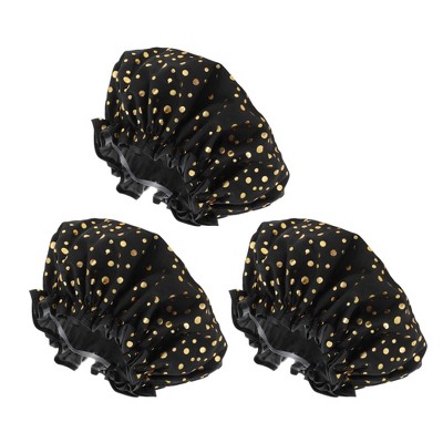 Unique Bargains Reusable Dots Double Layer Shower Cap 3 Pcs