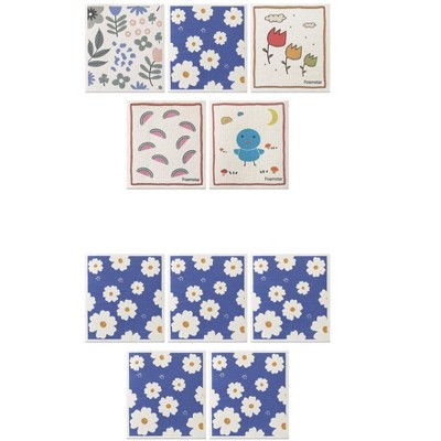 Unique Bargains Reusable Swedish Wildflowers Lightweight Super Absorbent Kitchen Dish Towels 5 Packs