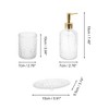 Item Function: 1. The product makings makes these suits less prone to breakage and can last longer. And each one can be adapted to your home, giving you more storage space. 2. Item includes 1 x mouthwash cup, 1 x lotion bottle, 1 x soap box. Has most things you need for a bathroom. 3. People can use these items together in your bathroom counter, your restroom, or you can use individual piece, such as tumbler for makeup tools or pens, dispenser for lotion, soap and more. It is also a stylish decoration full of vitality for your monotonous ordinary bathroom, easy to match with different styles. 4. Functional and beautiful design make this bathroom accessories set a great gift for housewarming, wedding, birthday, mother's Day, thanksgiving Day, also for mom, sister, colleague and friends. Specifications: Product Name: Bathroom Accessories Set, Material: Glass, Mouthwash Cup Size: 10x7cm / 3.94"x2.76"(L*W), Lotion Bottle Size: 19x7cm / 7.48"x2.76"(L*W), Soap Box Size: 15x9.5cm / 5.91"x3.74"(L*W), Package List: 1 Set Bathroom Accessories Set.