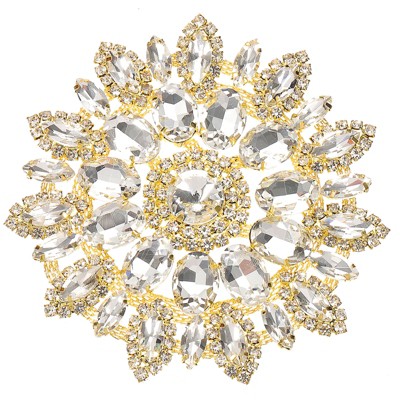 The rhinestone applique is a versatile embellishment suitable for various occasions such as weddings, birthdays, parties, anniversaries, and Christmas. It can be used to decorate shoulder marks, scarves, suits, dresses, belts, shirts, bridal bouquets, wrist corsages, and more. Made of rhinestone and alloy, it is sturdy and resistant to breakage, deformation, and fading. The applique features an elegant and shiny design that creates eye-catching visual effects under sunlight. The back has a metal chain and a smooth textured base, allowing for easy sewing or attachment with adhesive. Please handle with care to maintain its beauty.