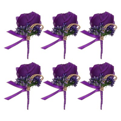 Unique Bargains Rhinestones Artificial Rose Bridesmaid Wrist Corsage and Boutonniere Set Dark Purple
