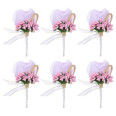 Unique Bargains Rhinestones Artificial Rose Bridesmaid Wrist Corsage and Boutonniere Set Pink Purple