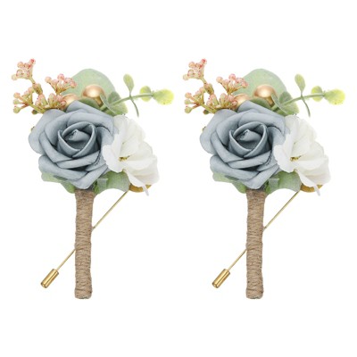 Unique Bargains Rhinestones Artificial Rose Bridesmaid Wrist Corsage and Boutonniere Set Sky Blue