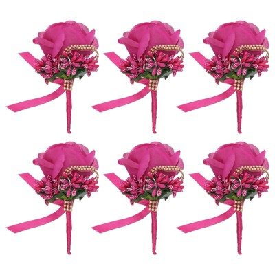 Unique Bargains Rhinestones Wedding Party Ceremony Artificial Rose Boutonnieres with Caps 6 Pcs Sky Blue