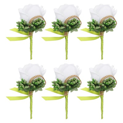 Unique Bargains Rhinestones Wedding Party Ceremony Artificial Rose Boutonnieres with Pins 2 Pcs Dark Orange