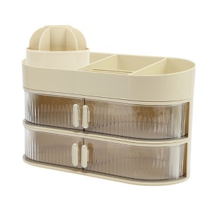 Unique Bargains Rotating Makeup Organizer with Drawer Beige 1 Pc