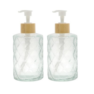 Unique Bargains Round Bottom Diamond Pattern Soap Dispenser 11.16oz 2 Pcs
