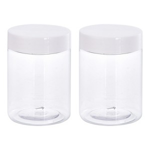 Unique Bargains Round Clear Plastic Empty Storage Jars with White Screw Top Lids 2 Pcs