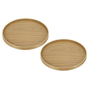 Unique Bargains Round Solid Wood Glaze Treated Non-Slip Kitchen Serving Tray 2 Pcs
