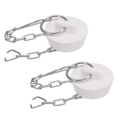 Unique Bargains Rubber Stainless Steel Beaded Chain with Pull Ring Drain Stoppers 2 Pcs