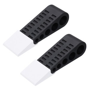 Unique Bargains Rubber Wedge Non-Slip Door Stops with Self-Adhesive Holder 2 Sets