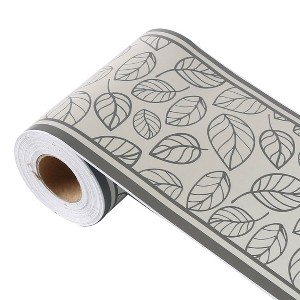 Unique Bargains Self Stick Gray Black Leaves Pattern Decor Wall Paper Border