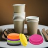 Quality material the silicone coffee cup lid is made from silicone which is resistant to high temperatures and has strong stability and high adsorption performance reusable and easy to clean Great seal spill-proof the drinking lids feature a rounded design with a drinking hole and air intake and with just elasticity sealed edges are always great fit around the rim of the cup ensuring a tight secure fit to prevent leaks and spills Reusable sealed mug lid simply place the lid over the top of your glass or cup ensuring a snug fit keeping your coffee hot longer or your beverages cold enough enhances flavor the lids are easy to remove and clean making them convenient for everyday use Wide application great for use at home in the office in travel in picnics or on the go suitable for cups made of ceramic glass plastic paper or any other material to keep your drink secure and protected from spills