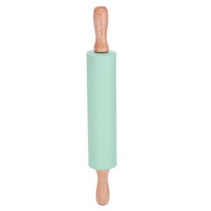 Unique Bargains Silicone Smooth Wooden Handle Non-Stick Kitchen Rolling Pin