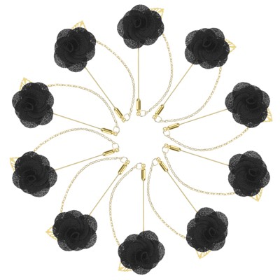 Unique Bargains Silk Alloy Created Camellia Flower Lapel Pin for Men Suit 2 x 1.3 inch 16 Pcs Black