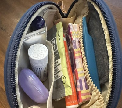 Bought this to help make items in my large bag easy to find. I use it to store bandaids, lipstick, tissues, a hair clip, and a small snack bar and then just transfer this pouch when I change bags. It wipes clean easily and has great organizational pockets inside!