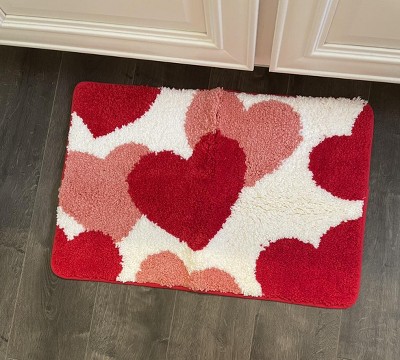 - This bathroom rug features a cute heart-shaped design, giving you and your loved one the warmest bathing time
