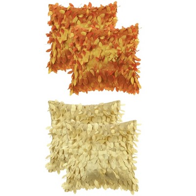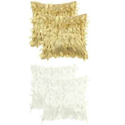 Unique Bargains Solid Color 3D Sequins Leaf Indoor Outdoor Throw Pillow Covers 4 Pcs