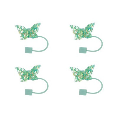 Unique Bargains Sparkling Butterfly Straw Cover Cap 4 Pcs