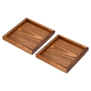 Unique Bargains Square Solid Wood Glaze Treated Non-Slip Kitchen Serving Tray 2 Pcs