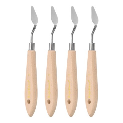 Unique Bargains Stainless Steel Flexible Pointy Wood Handle Painting Mixing Knife 4 Pcs