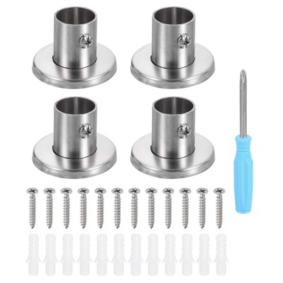 Unique Bargains Stainless Steel High-Leg Style Wardrobe Closet Rod Holder 4 Pcs