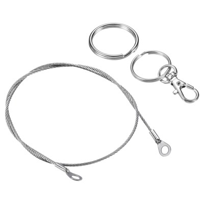 Unique Bargains Stainless Steel Lanyard Cables Eyelets Ended Security Wire Rope 6 Pcs with 12 Pcs Key Ring