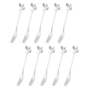 Unique Bargains Stainless Steel Leaf Appetizer Fork for Home Party 10 Pcs
