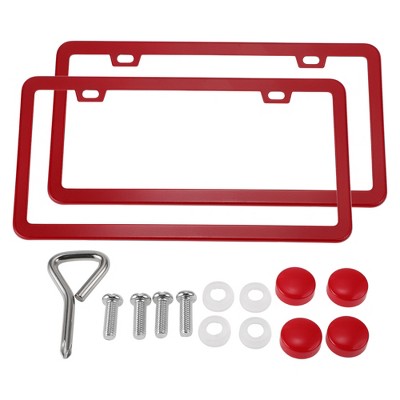 Unique Bargains Stainless Steel License Plate Holder Round Hole Mirror Polished Red