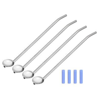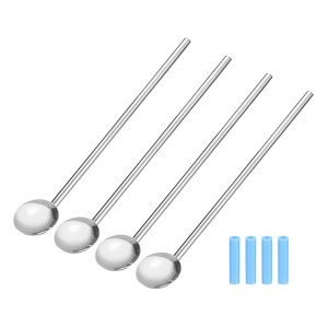 Unique Bargains Stainless Steel Long Handle Reusable Drinking Spoon Straws with Silicone Tips 4 Pcs