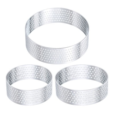 Unique Bargains Stainless Steel Non-Stick Perforated Baking Dessert Round Cake Ring 3 Pcs