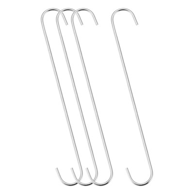 Unique Bargains Steel Extra Long Garden Bathroom Kitchen S Shape Hooks and Hangers 12inch/300mm Matt Silver 8 Pcs