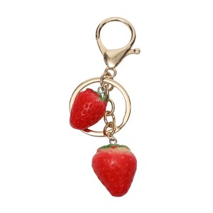 Unique Bargains Halloween Christmas Strawberry Handbag Charm Gold Tone Red 1 Pc