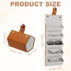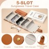 The sunglasses travel case is made of PU leather outer layer and soft flocking inner layer which is sturdy and resistant to extrusion. It protects the eyeglasses from damage and prevents the lens from being damaged by friction. The sunglasses organizer boxes feature a handheld strap allowing it to be opened and hung in the wardrobe or shelf to display multiple sunglasses for easy portability outside. It has a slot compartment and folding design making it easy to store in drawers or suitcases to save space. When opened it maximizes storage capacity for your convenience. This organizer is foldable for saving luggage space and effortlessly stores glasses cosmetics and accessories in separate compartments eliminating the need for multiple sunglass cases.
