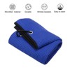 Unique Bargains Super Absorbent Waffle Pattern Tri-Fold Microfiber Golf Towels with D Clips 20"x16" 2 Pcs