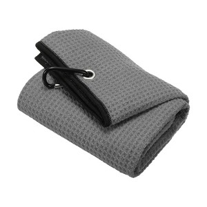 Unique Bargains Super Absorbent Waffle Pattern Tri-Fold Microfiber Golf Towels with D Clips 20"x16"