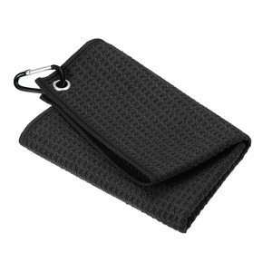 Unique Bargains Super Absorbent Waffle Pattern Tri-Fold Microfiber Golf Towels with D Clips