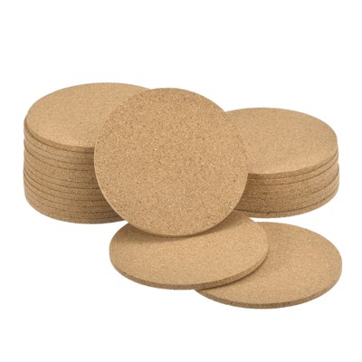 These coasters are made of cork, providing durability and a soft touch. They are resistant to both high and low temperatures. The coasters have a natural wood color. You can paint or write on these cork tiles, making them perfect for DIY projects. The coasters can be used as mats for cups, bowls, plates, pots, and vases. They are also ideal for creative DIY crafts.