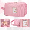 Item Function: 1. This cosmetic bag is spacious and designed with multiple compartments to keep your cosmetics organized. Good for storing everything you use every day. 2. This makeup bag features unique stitched chenille letters that won't fall off easily. You can choose your initials or other letters with special meaning as decoration. This personalized initial cute cosmetic bag is suitable for a mother, wife, female friend, or teacher gift, the personalized lettering design can express your care and love. 3. The compact size can accommodate your cosmetics or toiletries and can easily fit into your luggage or backpack, making it a good companion when you go out. 4. The cosmetic bag's comfortable handle is easy to hold directly in your hand, good for commuting, errands, traveling, walking the dog, going to the supermarket, and storing cosmetics and small items. Please Note: The beauty product is not included in the package!