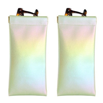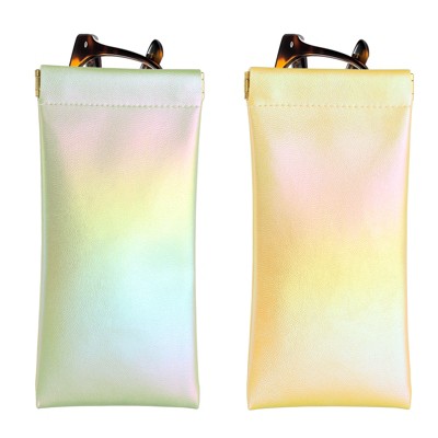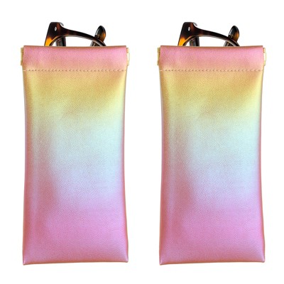 Unique Bargains Travel PU Leather Soft Squeeze Top Sunglass Pouch Organizer 2 Pcs