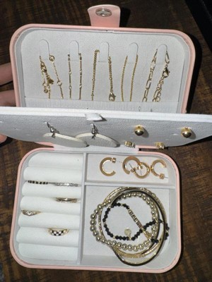 [This review was collected as part of a promotion.] I travel and love to accessorize. I got some basic jewelry in my box right now. It fits majority of my stuff. I like how my necklaces and bracelets have their little slot but afraid of the bottoms getting stuck together because it’s obvious not big enough for my necklaces but it’s not too bad. I think the box is sturdy enough and nothing gets tossed around inside too much. Overall I think it’s way better than throwing jewelry in a little bag for travel and struggling to untangle stuff.