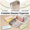 This foldable glasses case is portable for sunglasses eyeglasses and more. Protect your glasses and foldable for saving luggage space it is an excellent travel companion fitting easily into backpacks purses or pockets without adding bulk. Crafted from good PU leather with a soft lining this foldable glasses case features a magnetic folding function. The outer shell prevents slipping while the inner lining safeguards lenses from scratches and damage offering double protection for your glasses. The stable and durable triangular shape provides ample space for larger frames offering compressive resistance. This glasses case has lightweight structure easy to carry outside. When not in use fold it up and store it without taking up space. Please check the size before purchasing.